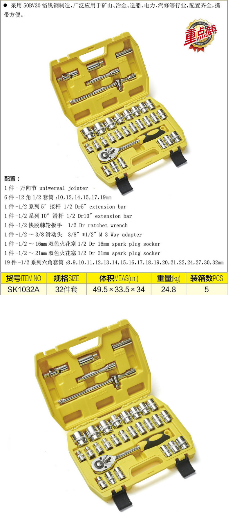 32 pcs Plastic box Sleeve Set (1/2") tool kit