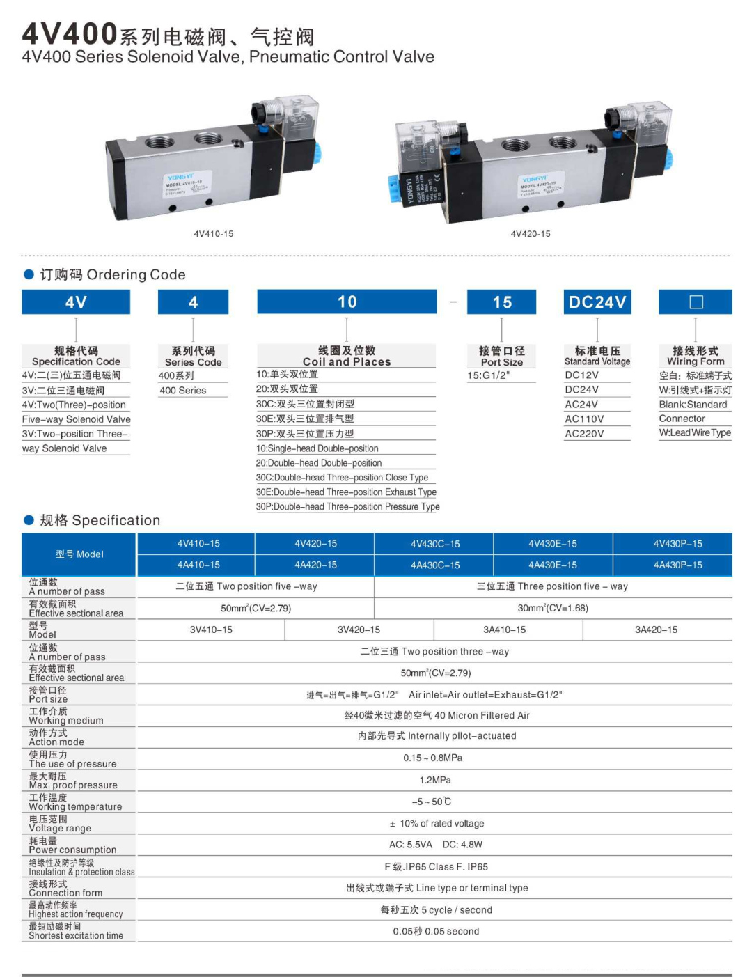 4V400 Series Solenoid Valve、Pneumatic Control Valve