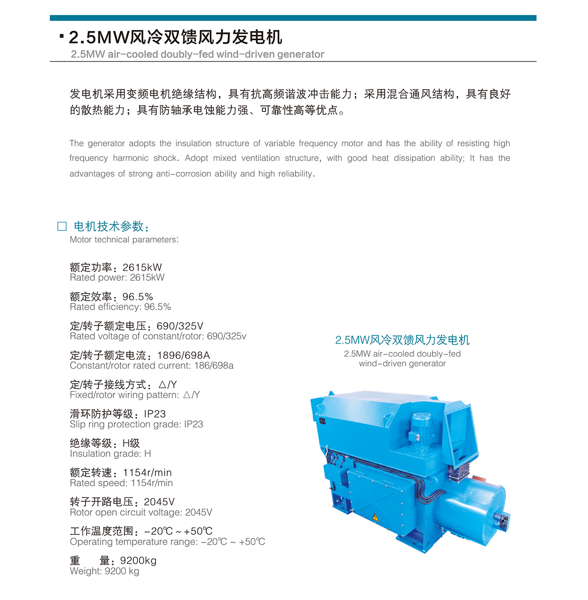 2.5MW air-cooled doubly-fed wind-driven generator